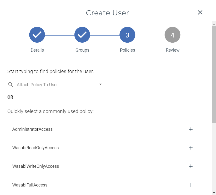 Finally, you can now check your configuration. If everything is according to your wishes, you can add the user to your Wasabi account with "Create user".