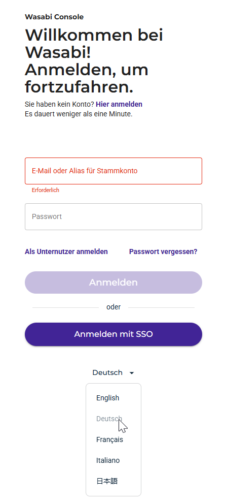 EL storage: In welche Sprachen ist die Wasabi Console und der Wasabi Explorer übersetzt?