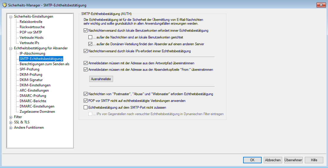 SMTP-Echtheitsbestätigung: