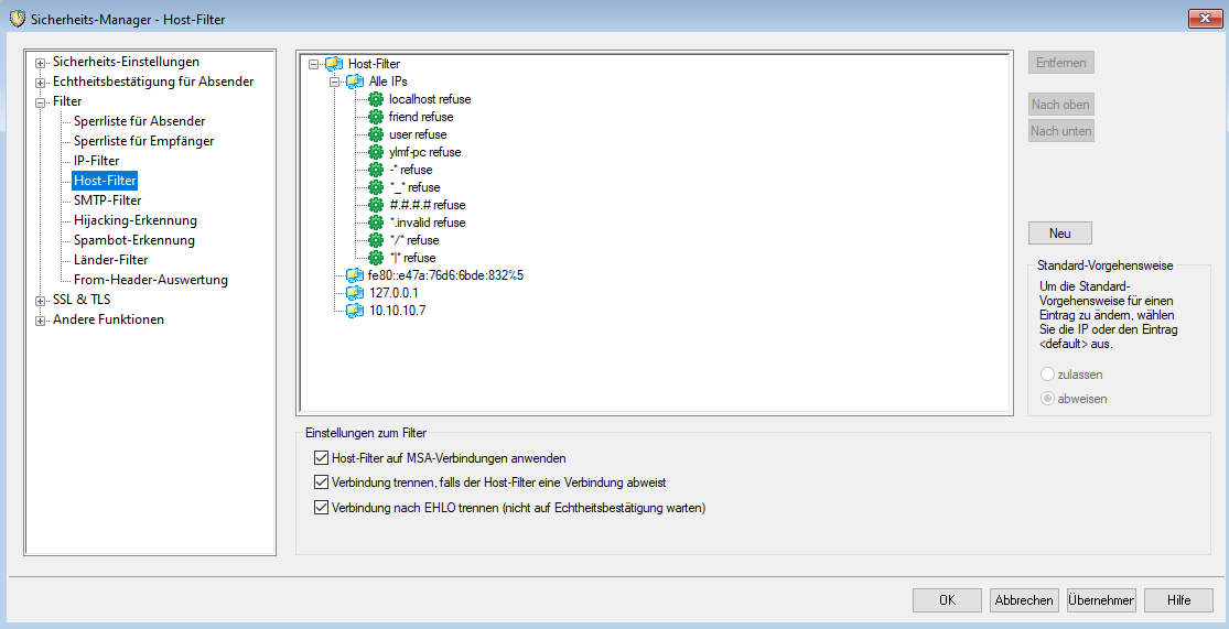 Lokale Adressen und Domänen sollten nicht auf dieser Liste stehen.