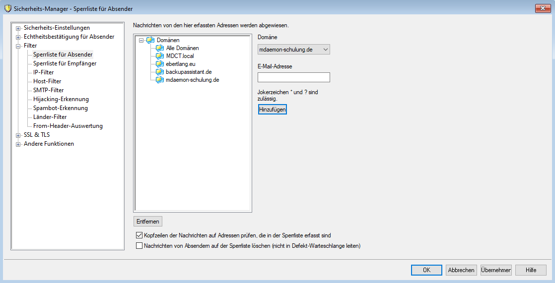 Sperrliste (Nach Absender):