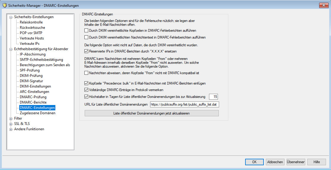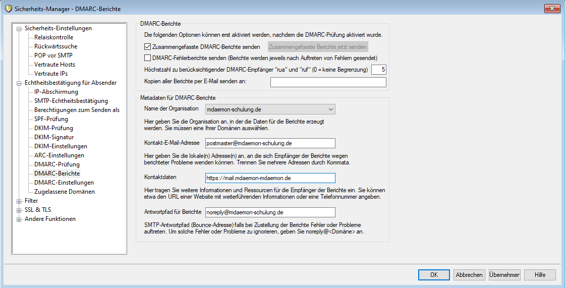 DMARC-Einstellungen: