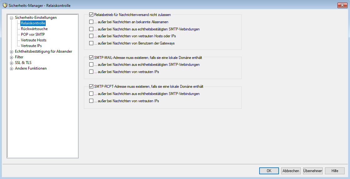 2. Wählen Sie Sicherheit → Sicherheits-Manager den Reiter Relaiskontrolle aus