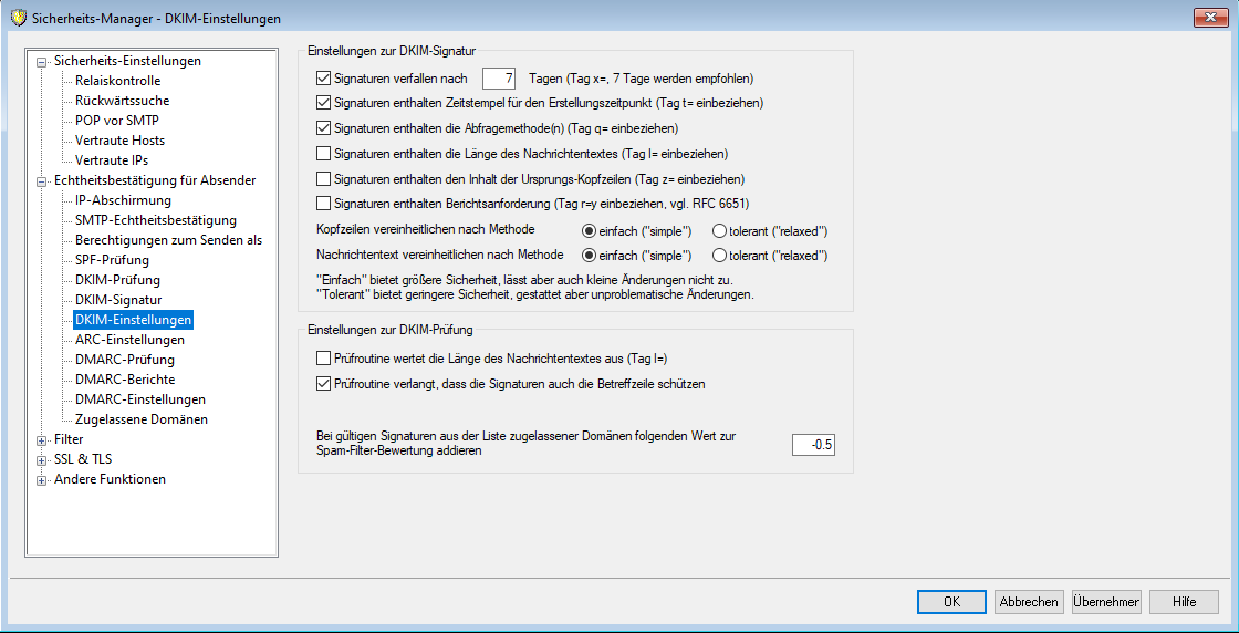 DKIM-Einstellungen: