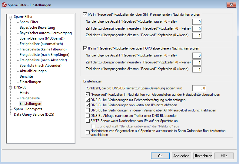 2. Wählen Sie unter "Sicherheit → Spam-Filter" den Reiter "DNS-BL" aus