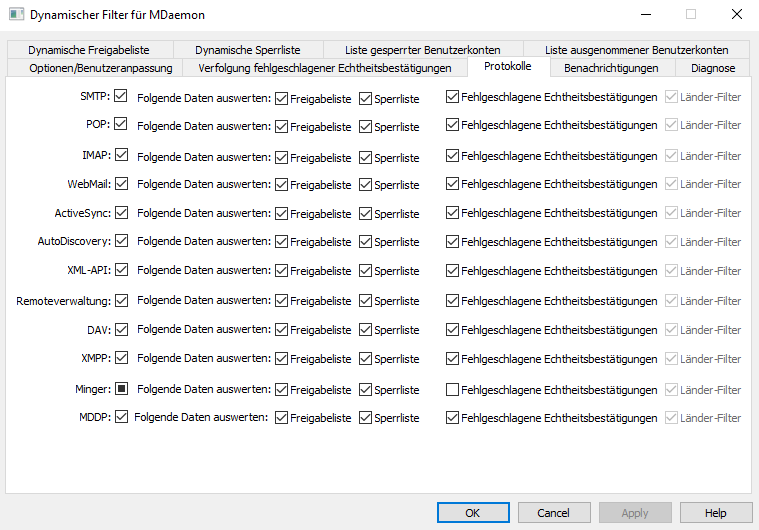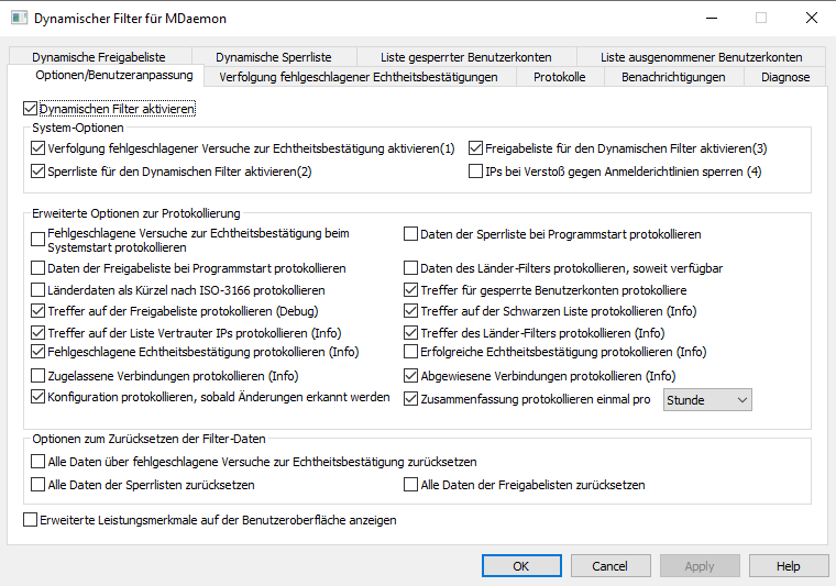 2. Wählen Sie in der MDaemon GUI Sicherheit → Dynamischer Filter... aus