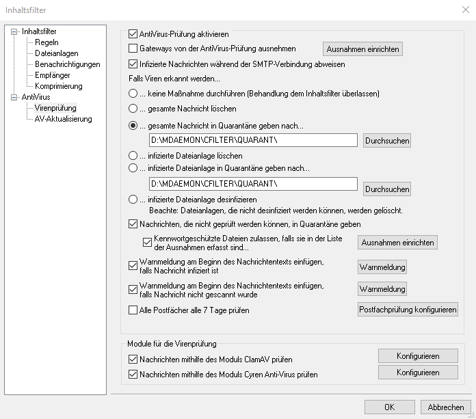 Empfohlene AntiVirus Einstellungen