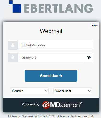 MDaemon Webmail-Anmeldeseite noch Hersteller-Informationen und -Logos