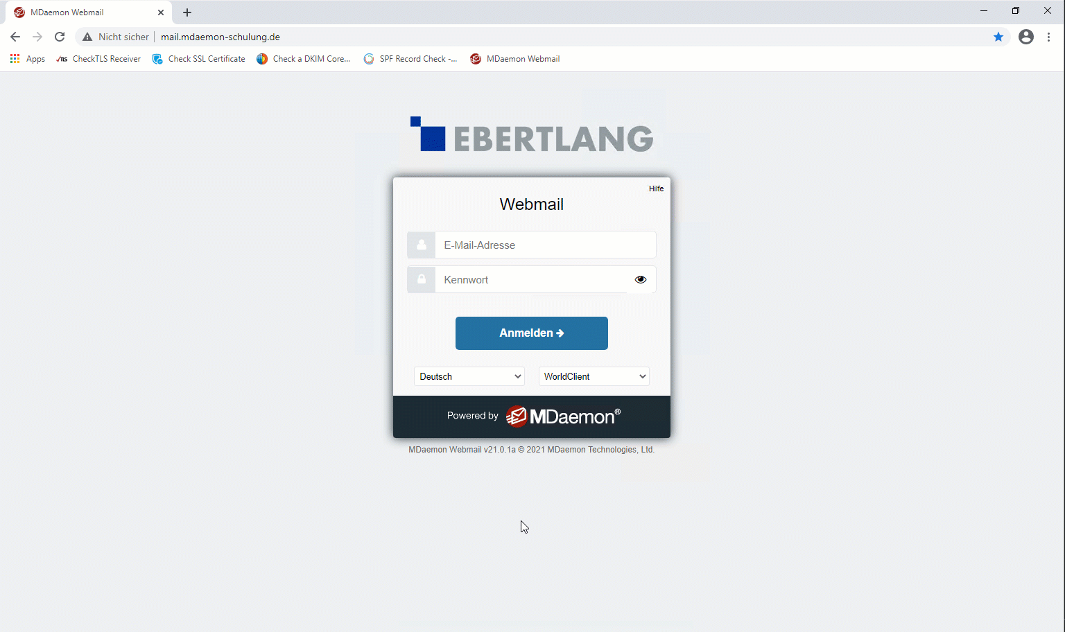 Sie abschließend MDaemon Webmail und überprüfen Sie bitte, ob die