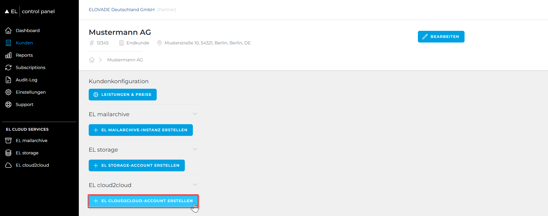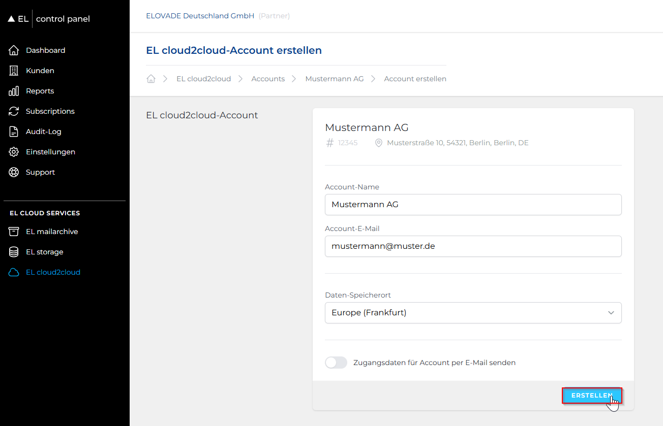 Klicken Sie auf "EL-cloud2cloud-Account erstellen":