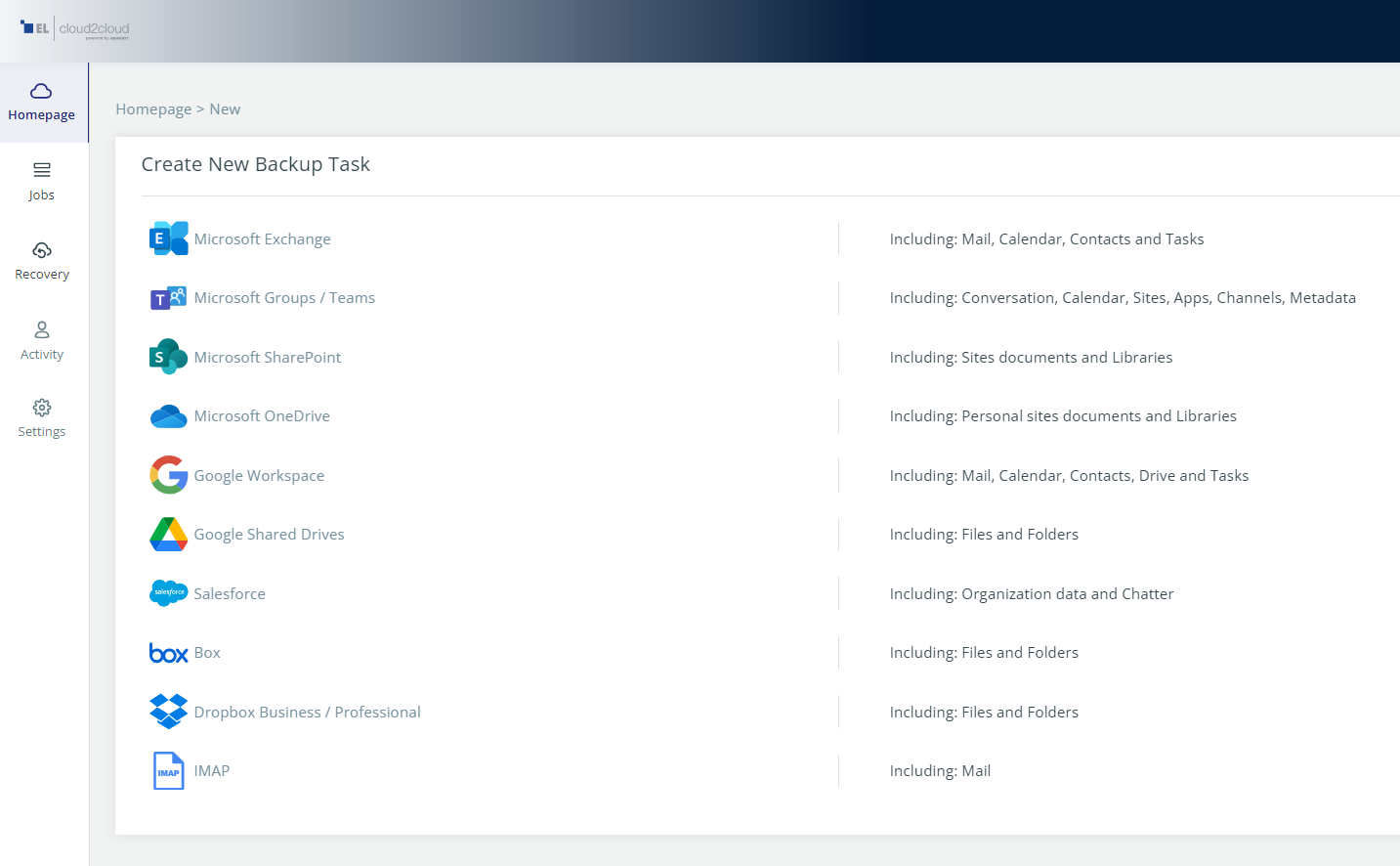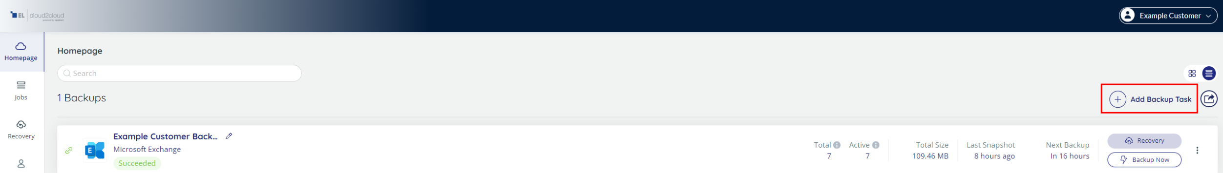 Hinweis: Wenn Sie bereits Backupjobs konfiguriert haben, können Sie über die Homepage des Backup-Portals einen weiteren Backupjob über den Add Backup Task anlegen.