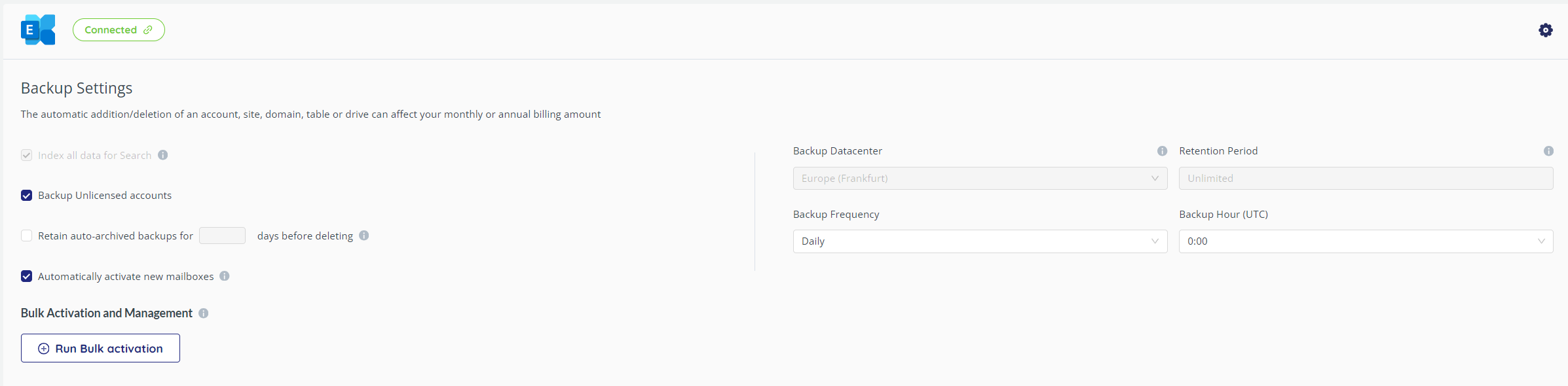 - Automatically activate new mailboxes – Die standardisiert aktivierte Option bewirkt, dass automatisch neu erkannte Postfächer in die Sicherung aufgenommen werden.