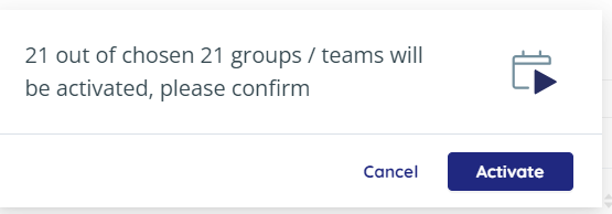 Nachdem Sie Ihre Backup-Einstellungen hinterlegt haben, müssen Sie als nächstes den Backupjob an sich für die gewünschten Teams und Groups aktivieren. Dafür haken Sie in der Liste der erkannten Groups/Sites all diejenigen an, die Sie sichern möchten und klicken im Anschluss in der oberen rechten Ecke auf den Button Action → Activate. In unserem Beispiel haben wir für alle Groups/Teams die Sicherung aktiviert.