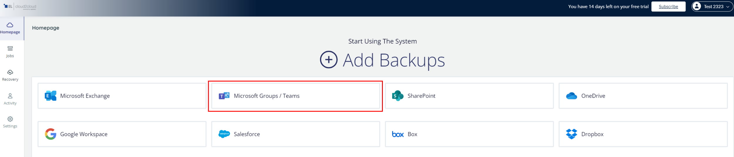 Hinweis: Wenn Sie bereits Backupjobs konfiguriert haben, können Sie über die Homepage des Backup-Portals einen weiteren Backupjob über den Add Backup Task anlegen.
