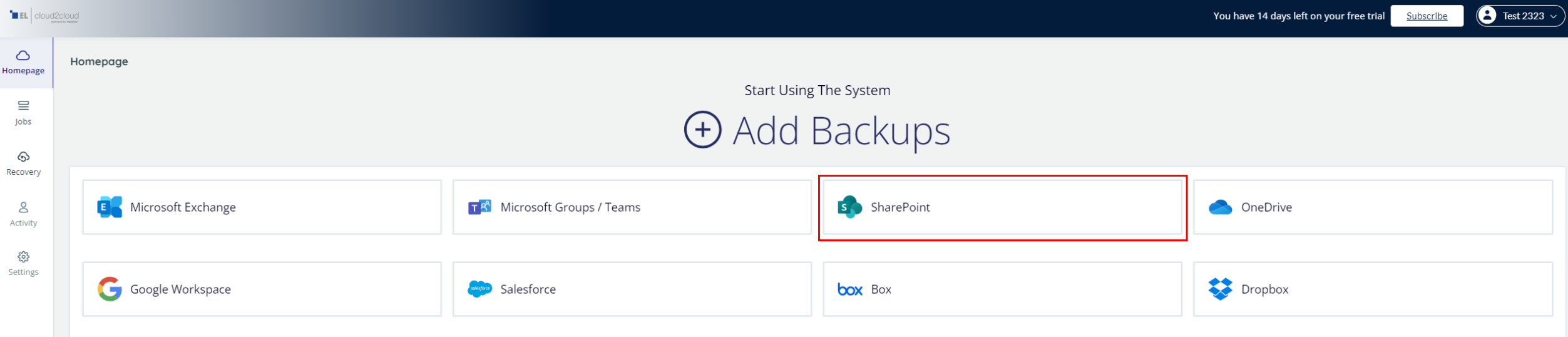 Hinweis: Wenn Sie bereits Backupjobs konfiguriert haben, können Sie über die Homepage des Backup-Portals einen weiteren Backupjob über den Add Backup Task anlegen.