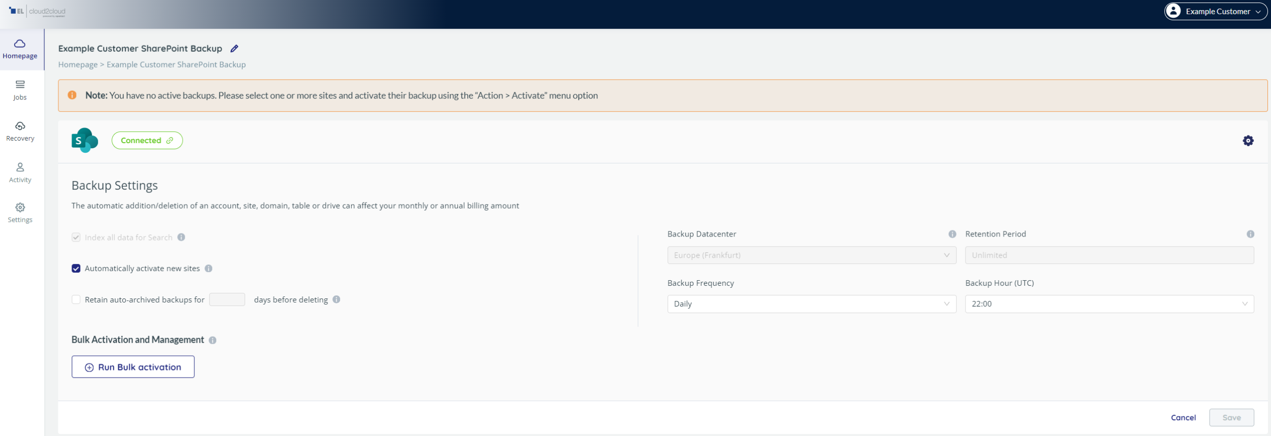 - Automatically activate new groups / teams – Die standardisiert aktivierte Option bewirkt, dass automatisch neu erkannte SharePoint-Sites mit in die Sicherung aufgenommen werden.