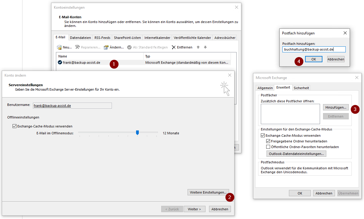 Diese Mitglieder können das nun freigegebene Postfach anschließend in Outlook hinzufügen :