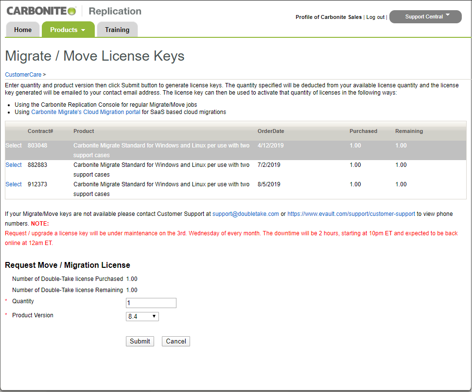 In diesem Artikel zeigen wir Ihnen wie Sie Lizenzen für Carbonite Migrate erwerben und erstmalig registrieren können, damit Sie diese innerhalb der Carbonite Replication Console verwenden können. Wenn Sie Interesse an Carbonite Migrate haben und Sie an einer einfachen Art der Migration zwischen physischen, virtuellen und Cloud-Umgebungen interessiert sind, dann haben Sie die Möglichkeit über unseren Vertrieb die nötigen Lizenzen für Carbonite Migrate zu erwerben. Dafür nehmen Sie Kontakt mit unserem Vertrieb über die E-Mail-Adresse sales@elovade.com auf und schildern Ihre Bestellung. Danach erhalten Sie den Zugang zu dem Lizenzportal von Carbonite Migrate, dass Sie über den folgenden Link erreichen können. Hier melden Sie sich mit den von uns bereitgestellten Anmeldeinformationen an.