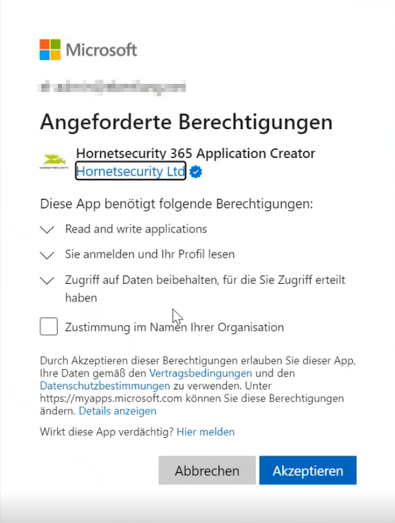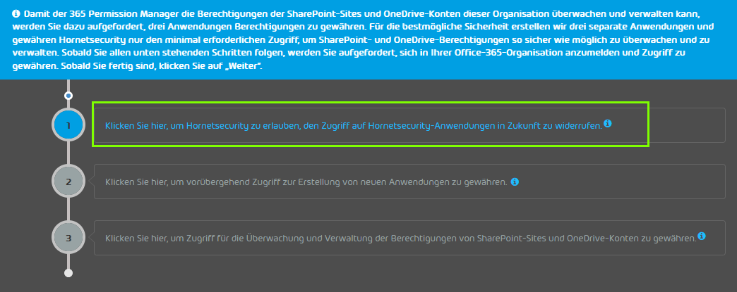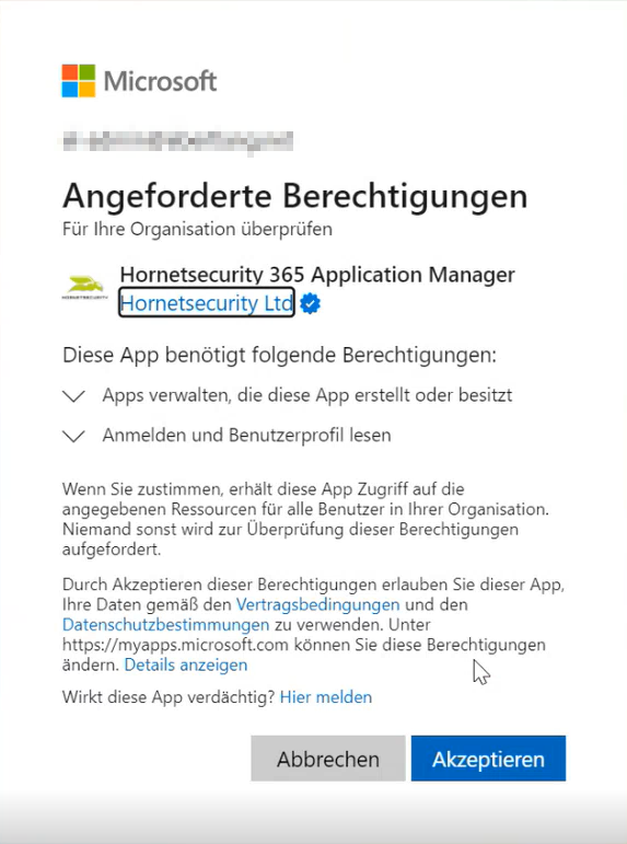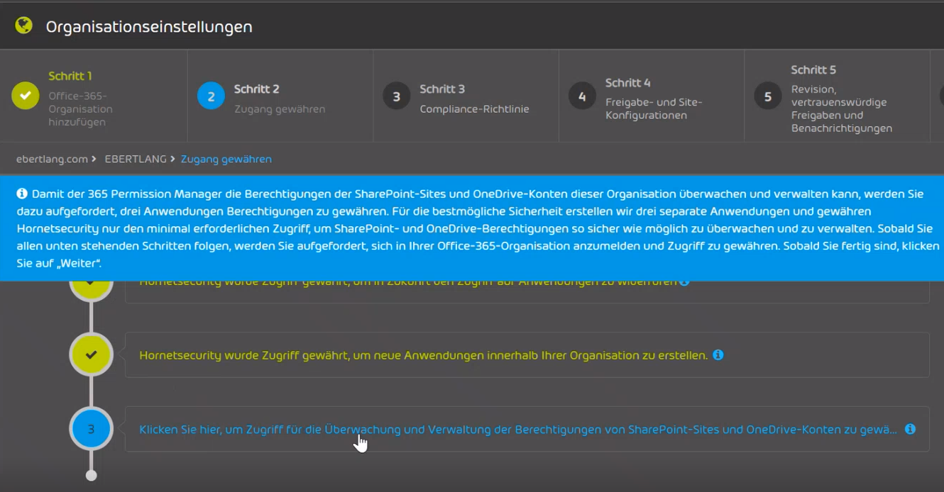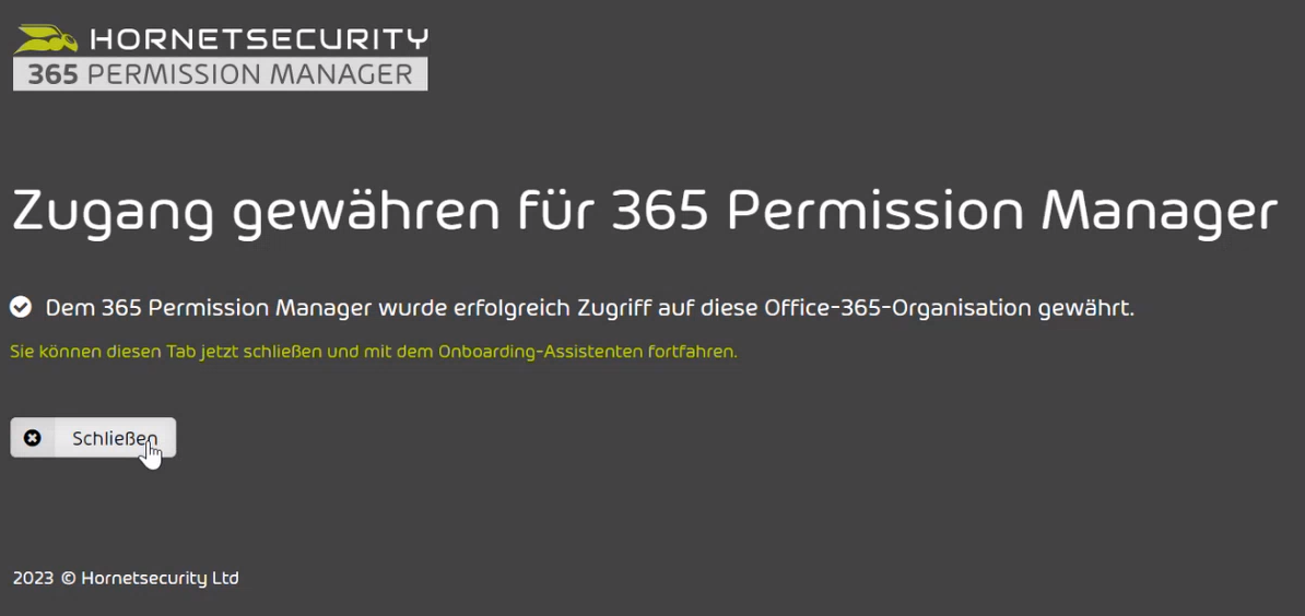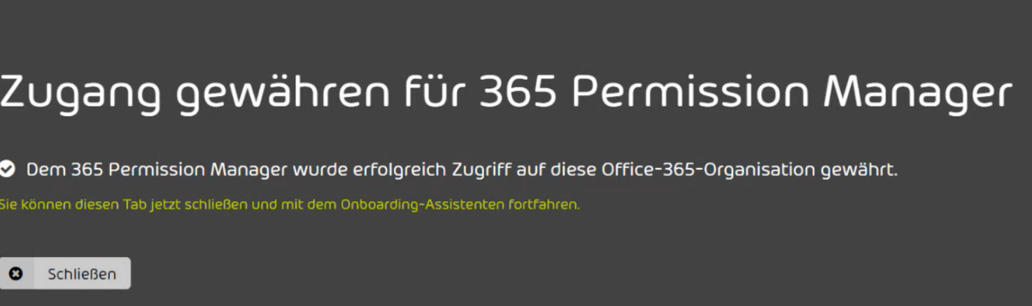 Nachdem Sie die grundlegenden Informationen hinterlegt haben, schließen Sie mit „Weiter“ ab. Im nächsten Schritt erteilen Sie dem Permission Manager via globalen administrativen Microsoft-Berechtigungen Zugriff auf den ausgewählten Tenant.