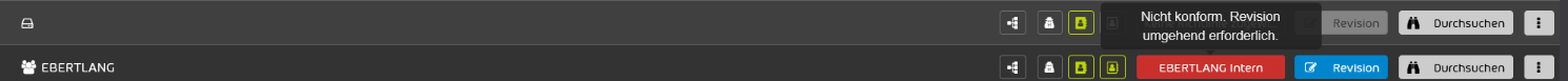 Die Übersicht zeigt Ihnen, welche Site nicht konform einer Richtlinie agiert. Über den Button „Revision“ (umgangssprachlich: Überprüfung) können Sie genauere Analysen durchführen, um zu evaluieren, wieso gegen eine Richtlinie verstoßen wurde.