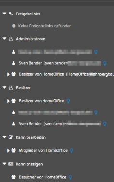 Über den Menüpunkt „Sites durchsuchen“ im linken Menüband haben Sie die Möglichkeit, in die einzelnen Sites des Tenants einzutauchen und beispielsweise zu überprüfen, welche Gruppe und/oder Benutzer welche Art von Berechtigung auf einen Ordner oder Datei hat.