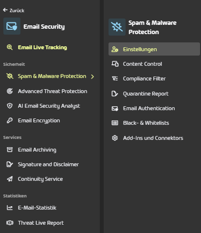 Aktivieren Sie in Hornetsecurity unter Sicherheitseinstellungen → Spam and Malware Protection die Einstellung "Spam and Malware Protection aktivieren"