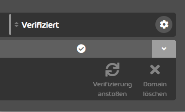 Bei der Domain befindet sich unter "Verifiziert" ein Symbol für "getrennt"