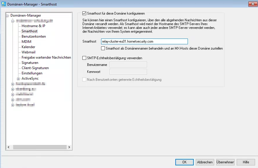 6. Domain in MDaemon anlegen/E-Mail-Versand an Hornetsecurity konfigurieren