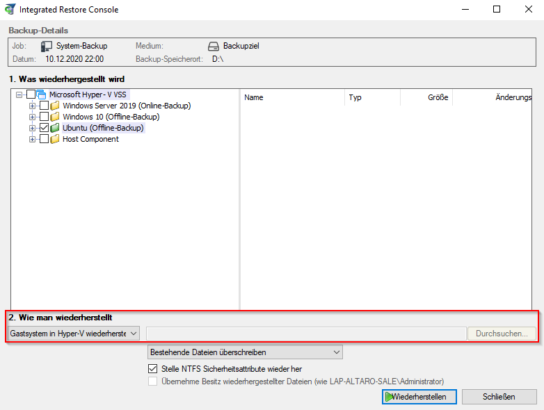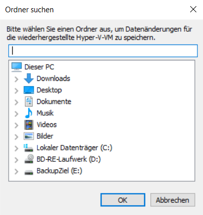 Sie können sich hier zwischen dem Hyper-V Gastsystem, oder einem anderen Dateipfad entscheiden.