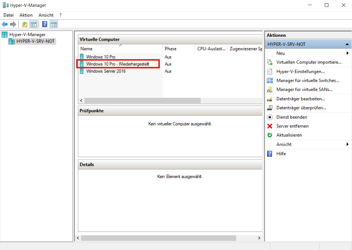 Vor allem wenn sich die Eigenschaften des Hyper-V Hosts geändert, oder Sie die Recovery auf einem anderen Host durchgeführt haben.