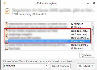 Erinnerungsdatum auf einen späteren Zeitpunkt gesetzt wurde als die