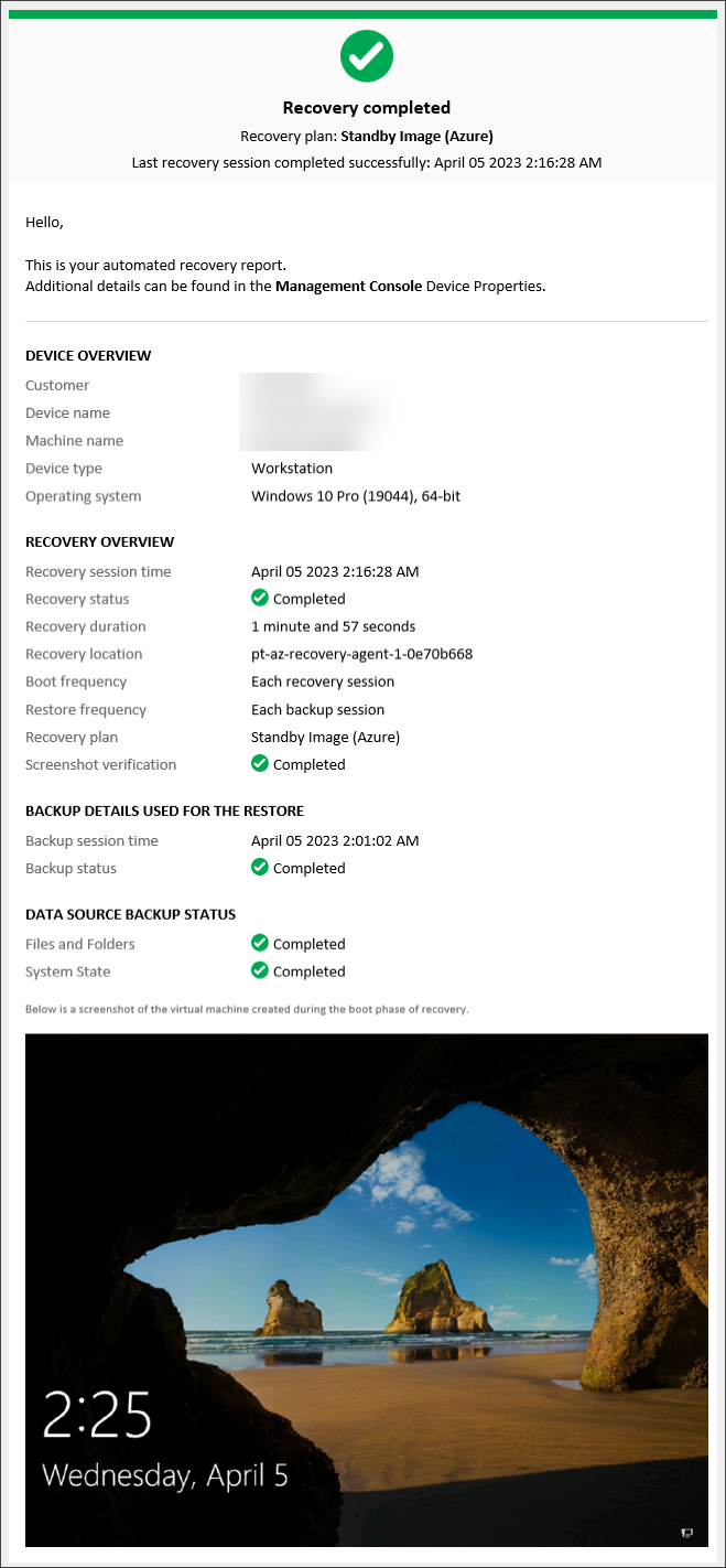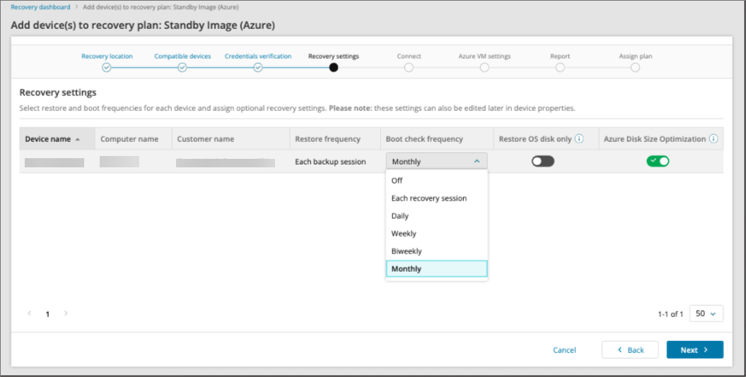 Sie den Kunden aus, zu welchem Gerät Sie den Standby-Image-Plan anwenden