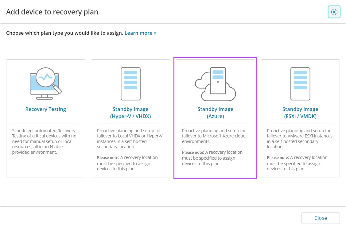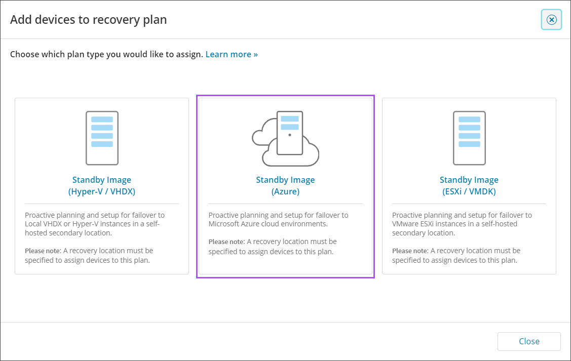 Führen Sie die Schritte aus, um das Standby-Image für den Azure-Plan ab