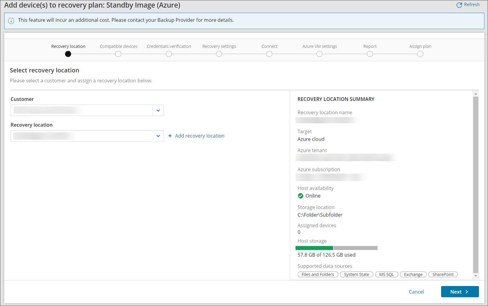 Speicherorts finden Sie unter Add Recovery Locations. Bitte beachten Sie, dass die erstellte VMs bei Azure