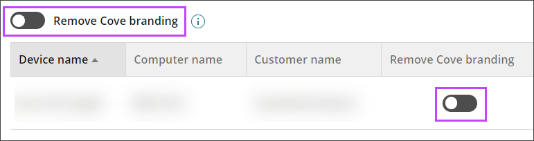 Schaltfläche Remove Cove branding pro Gerät oder oberhalb