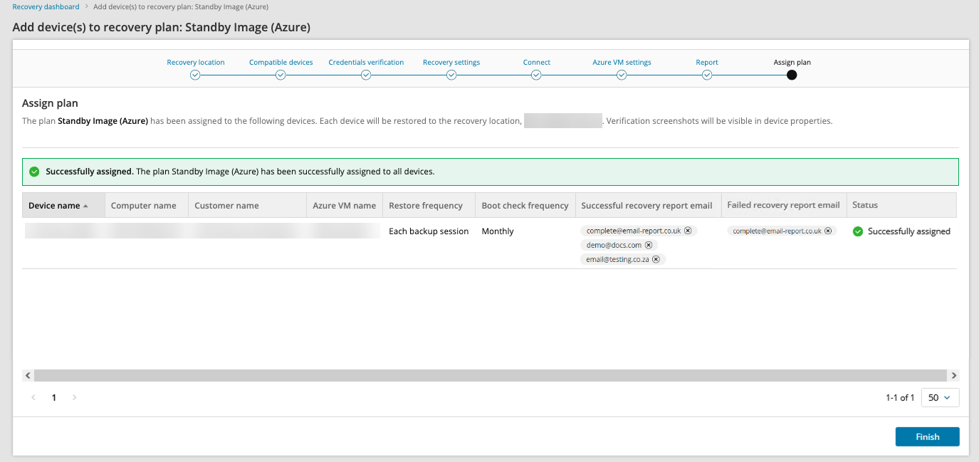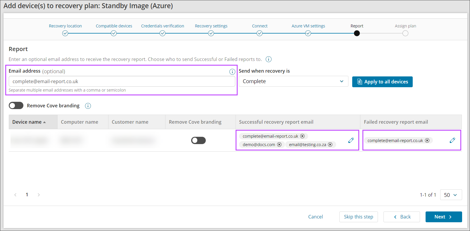 19. Klicken Sie auf Weiter, um zum Berichtsfenster zu gelangen und eine oder mehrere E-Mail-Adressen einzugeben, um einen Bericht zu erhalten, wenn die Wiederherstellung abgeschlossen ist (trennen Sie mehrere E-Mail-Adressen durch ein Komma oder Semikolon).