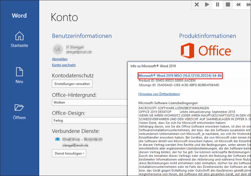 Hinweis: In Microsoft Office Outlook Build 1708 gab es Probleme mit 3rd-Party-Addins. Sollte diese Build-Nummer vorliegen, müssen Sie Outlook updaten.