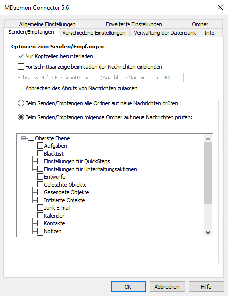 Hier prüft der MDaemon Connector alle IMAP-Ordner auf neue Nachrichten.