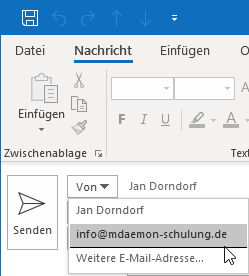 In der folgenden Anleitung erfahren Sie, wie Sie ein MDaemon Connector-Konto von Ihrem MDaemon Email Server so konfigurieren, dass Sie auch unter einer anderen E-Mail-Adresse, wie z.B. „info@“ oder „sales@“ Nachrichten versenden können. Dies setzt voraus das diese E-Mail-Adresse in MDaemon als Postfach, bzw. Adress-Aliasname existiert.