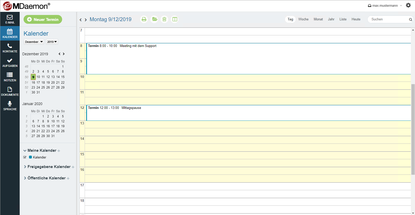 MDaemon Webmail ist eine webbasierte Oberfläche, die den Benutzern alle E-Mail-Funktionen innerhalb ihres bevorzugten Web-Browsers bietet. Alle durch die Benutzer angelegten E-Mail-Ordner und gespeicherten Informationen liegen zentral auf dem Server.