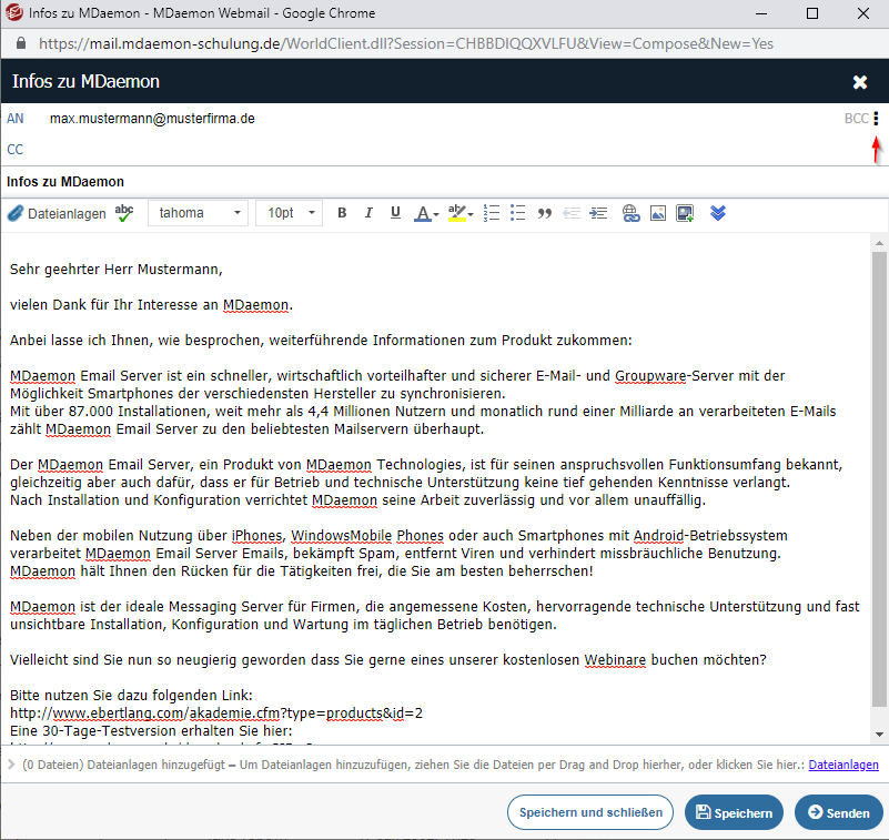 MDaemon Webmail: Zeitversetzter Versand von E-Mail-Nachrichten