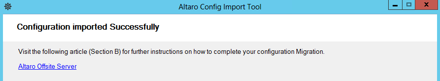 Zum Schluss sollten Sie dieses Fenster sehen, welches Ihnen bestätigt, dass die Konfiguration erfolgreich importiert wurde. Um die Migration abzuschließen, fahren Sie mit Abschnitt B fort.
