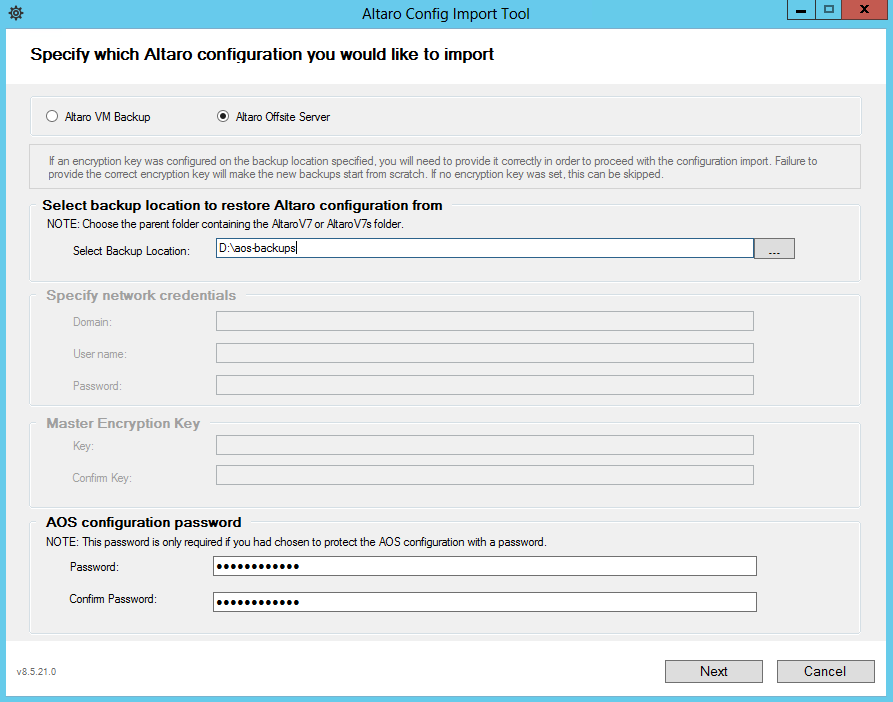 - Die Altaro Offsite Server-Konsole darf nicht geöffnet sein