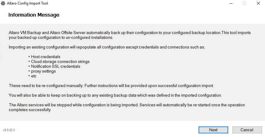 - Die Altaro Offsite Server-Installation muss mindestens auf der Version 8.5.20 laufen, um das Migrationswerkzeug benutzen zu können.