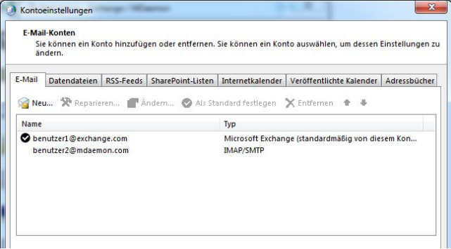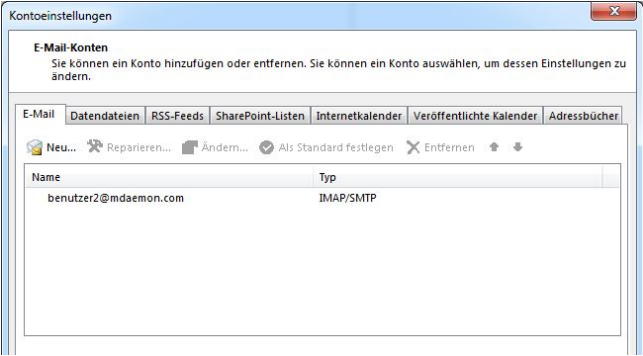 In den Kontoeinstellungen erscheint nun nur noch das MDaemon-Konto: