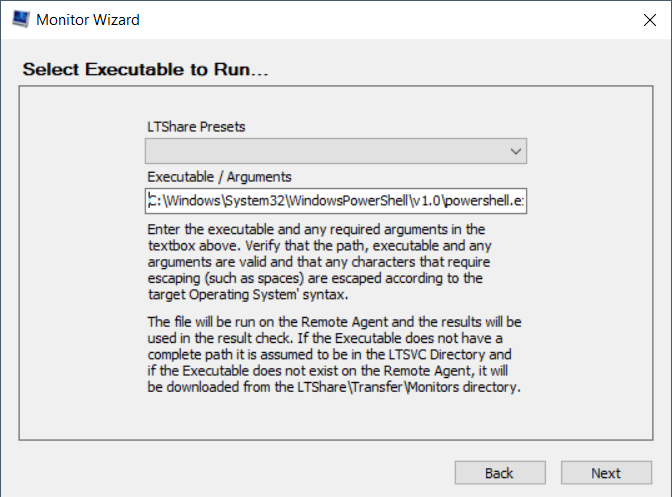 Einer dieser Typen, "External EXE Check", erlaubt die Übergabe von PowerShell-Befehlen: