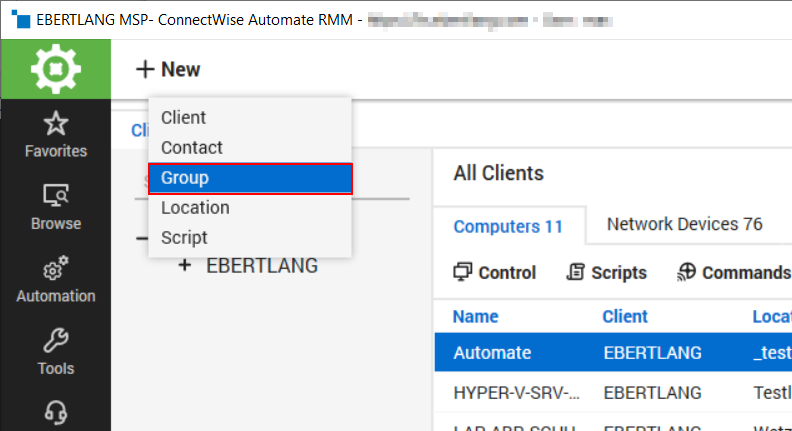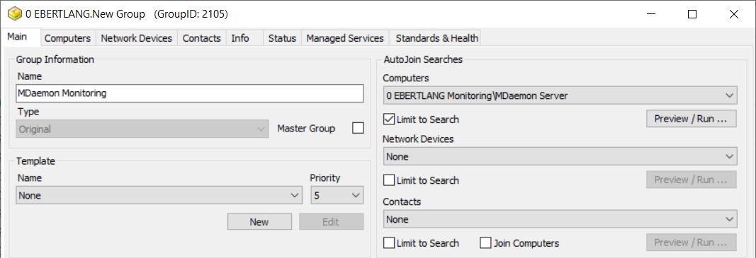 Erstellen Sie über einen Klick auf „+ New“ eine neue Gruppe mit dem Namen „MDaemon Monitoring“.