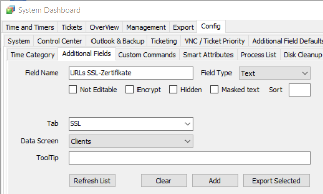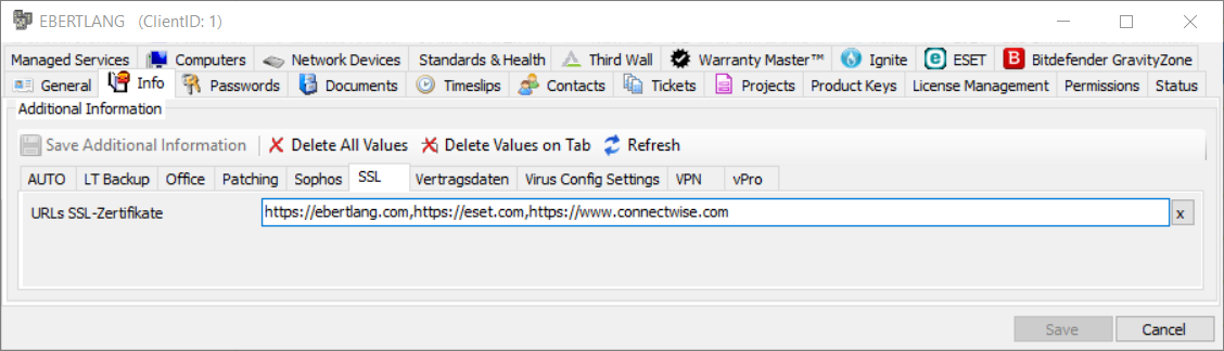 angelegten Feld können Sie nun (je Kunde) ein oder mehrere URLs im
