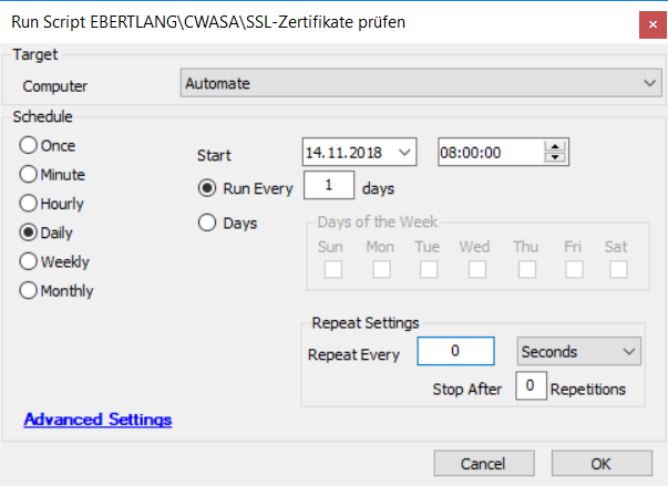 die Ausführung kann z.B. die Frequenz “Daily” gewählt werden.