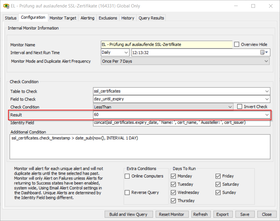 Der Monitor prüft, ob ein SSL-Zertifikat innerhalb der nächsten 60 Tage